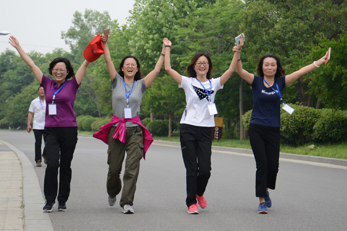 9點(diǎn)30分,健步走活動開始。40多分鐘后,60多名黨員干部一個(gè)不拉地走過終點(diǎn)。王耀等部領(lǐng)導(dǎo)分別給獲得男女前10名的同志頒獎。