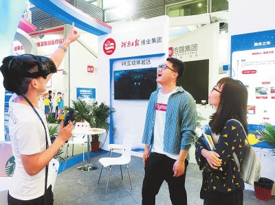 深圳文博會(huì)上,河南日?qǐng)?bào)報(bào)業(yè)集團(tuán)展館的VR互動(dòng)體驗(yàn)區(qū)吸引了許多觀眾前來體驗(yàn)。師喆攝